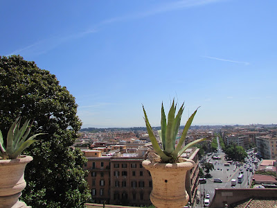 Muito mais ficou por dizer ou revelar, numa visita de 5 dias e 4 noites e 1326 fotografias depois. Mas tanto o Coliseu como o Vaticano são vastíssimos e já deram azo a vários livros, não é resumo que se faça assim numa penada bloguista (se bem que 20 mil visitantes por dia neste último, nos façam sentir um pouco como carneirada encurralada num redil, a seguir em frente a "toque de caixa", o que faz com que se perca muito da história ali patente - não só do antigo império romano, do cristianismo e dos seus primórdios, como do Egipto ou da Grécia, dois bastiões da antiguidade). Fica a paisagem romana, vista de uma das janelas cimeiras do museu.